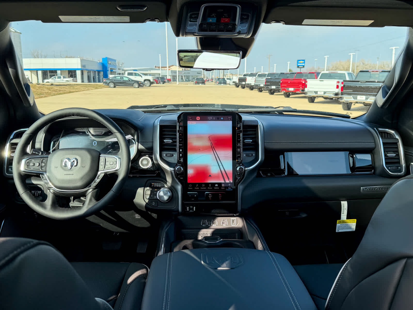 Leather Seats, Heated Driver Seat, Heated Rear Seat, Cooled Driver Seat, iPod/MP3 Input Vance Auto Group Lifetime Powertrain Program Ram Laramie with Ivory White Tri-Coat Pearlcoat exterior and Black interior features a 8 Cylinder Engine with 395 HP at 5600 RPM*.