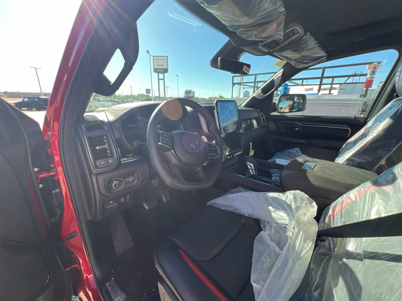 Full Length Premium Upgraded Floor Console, Surround View Camera System, Rain Sensitive Windshield Wipers, LED CHMSL Lamp, Power Adjustable Pedals w/Memory, Front Passenger Interactive Display, Traffic Sign Recognition, Hands-Free Active Driving Assist System, Front Passenger Power Seat Back Massage, Head Up Display, Evasive Steer Assist, Heated Second Row Seats, Drowsy Driver Detection, Driver Power Seat Back Massage, Intersection Collision Assist System, Leather/Carbon Flat-Bottom Steering Wheel, Smartphone As A Key Capable, 14.4 Touchscreen Display, Driver/Passenger Wrapped Assist Handles, Dual Wireless Charging Pad, Radio: Uconnect 5 Nav w/14.4 Display, Ventilated Rear Seats, Rear 60/40 Folding Split Recline Seat, 240 Amp Alternator, Ventilated Front Seats, harman/kardon® 19 Speaker, Dome Dual LED Reading Lamp, RED INTERIOR ACCENTS, MOPAR RHO HOOD GRAPHICS, Trailer Reverse Steering Control, Trailer Tire Pressure Monitoring System, MOPAR RHO EXTERIOR GRAPHICS, MOLTEN RED PEARLCOAT, (STD), (STD). Excellent Condition