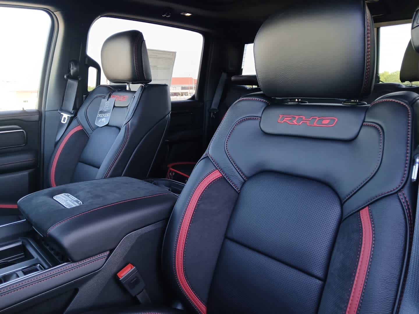 Leather Seats, iPod/MP3 Input, Trailer Hitch, Aluminum Wheels, Remote Engine Start Dealer Installed Bed Liner Ram RHO with Molten Red Pearlcoat exterior and Black interior features a Straight 6 Cylinder Engine.