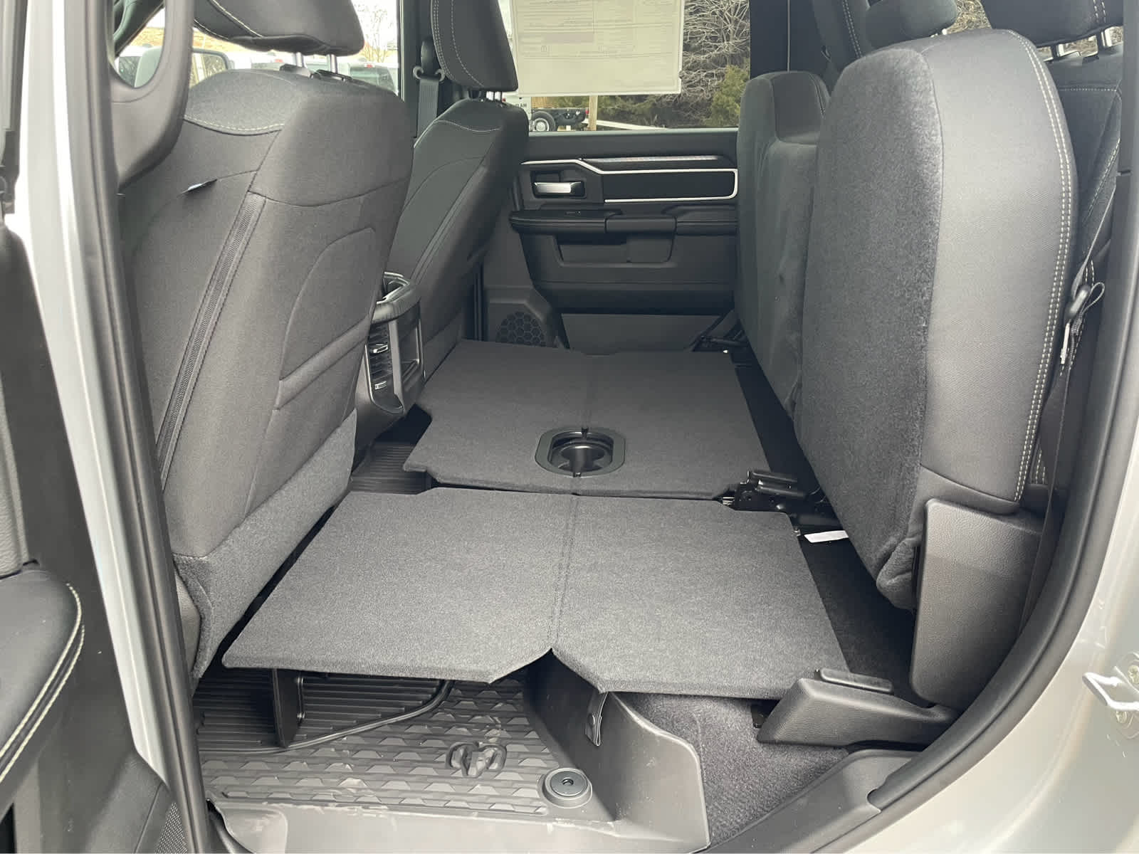 GVWR: 11,040 lbs, Selective Catalytic Reduction (Urea), Dual 730 Amp Maintenance Free Batteries, Cummins Turbo Diesel Badge, Heavy Duty Engine Cooling, Diesel Exhaust Brake, Supplemental Heater, 3.42 Axle Ratio, Front Bumper Sight Shields, Capless Fuel Fill w/o Discriminator, Emergency Vehicle Alert System (EVAS), 12 Touchscreen Display, Glove Box Lamp, Auto Power-Folding Mirrors, Footwell Courtesy Lamp, Anti-Spin Differential Rear Axle, MOPAR Deployable Bed Step, Alexa Built-In, Forward & Reverse Utility Lights, Locking Lower Glove Box, Remote Start System, 9 Alpine Speakers w/Subwoofer, Disassociated Touchscreen Display, Dual Glove Boxes, 2nd Row In Floor Storage Bins, Rear View Auto Dim Mirror, Rear Dome w/On/Off Switch Lamp, LED Bed Lighting, GPS Navigation, SiriusXM w/360L, Connected Travel & Traffic Services, Foam Bottle Insert (Door Trim Panel), Big Horn IP Badge, Off-Road Info Pages, Trailer Tow Pages, HD Radio, Radio: Uconnect 5 Nav w/12.0 Display, Power Heated Folding Telescopic Mirrors, Steering Wheel Mounted Audio Controls, Air Conditioning ATC, Tires: LT285/60R20E OWL On/Off Road, Bucket Seats, Power Adjust 8-Way Driver Seat, Folding Flat Load Floor Storage, Rear 60/40 Folding Seat, Front Seat Back Map Pockets, Power 2-Way Driver Lumbar Adjust, Full Length Upgraded Floor Console, MOPAR FRONT & REAR RUBBER FLOOR MATS, TRANSMISSION: 8-SPEED TORQUEFLITE HD AUTOMATIC. Ram Big Horn with Silver Zynith exterior and Black interior features a Straight 6 Cylinder Engine with 430 HP at 2800 RPM*.