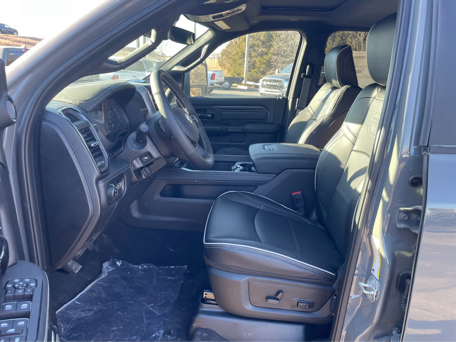 Selective Catalytic Reduction (Urea), Dual 730 Amp Maintenance Free Batteries, Cummins Turbo Diesel Badge, Heavy Duty Engine Cooling, Diesel Exhaust Brake, Supplemental Heater, 3.42 Axle Ratio, Front Bumper Sight Shields, Fuel Tank Brush Guard, Capless Fuel Fill w/o Discriminator, GVWR: 11,040 lbs, Power Adjustable Pedals w/Memory, Front Passenger Interactive Display, Power Deployable Running Boards, MOPAR Deployable Bed Step, Premium Overhead Console, Leather Wrapped Shift Control, 17 Speaker harman/kardon® Premium Sound, LED Interior Lighting, LED Dome Lamp w/On/Off Switch, Universal Garage Door Opener, Sun Visors w/Illuminated Vanity Mirrors, CTR Stop Lamp w/Cargo View Camera, Rain Sensitive Windshield Wipers, LED Bed Lighting, Body Color Door Handles, Overhead LED Lamps, Auto Dim Exterior Mirror, Leather Wrapped Grab Handle, 14.4 Touchscreen Display, Power Heated Fold Telescopic Mirrors w/Memory, Sport Performance Hood, Radio: Uconnect 5 Nav w/14.4 Display, MOPAR Spray In Bedliner, Front Door Locks 2-Door Passive Entry, Auto High Beam Headlamp Control, Exterior Mirrors w/Memory, AUTO LEVEL REAR AIR SUSPENSION, Surround View Camera System, Trailer Tire Pressure Monitoring System, Trailer Reverse Guidance, POWER SUNROOF, TRANSMISSION: 8-SPEED TORQUEFLITE HD AUTOMATIC. Ram Rebel with Ceramic Gray Clearcoat exterior and Black interior features a Straight 6 Cylinder Engine with 430 HP at 2800 RPM*.