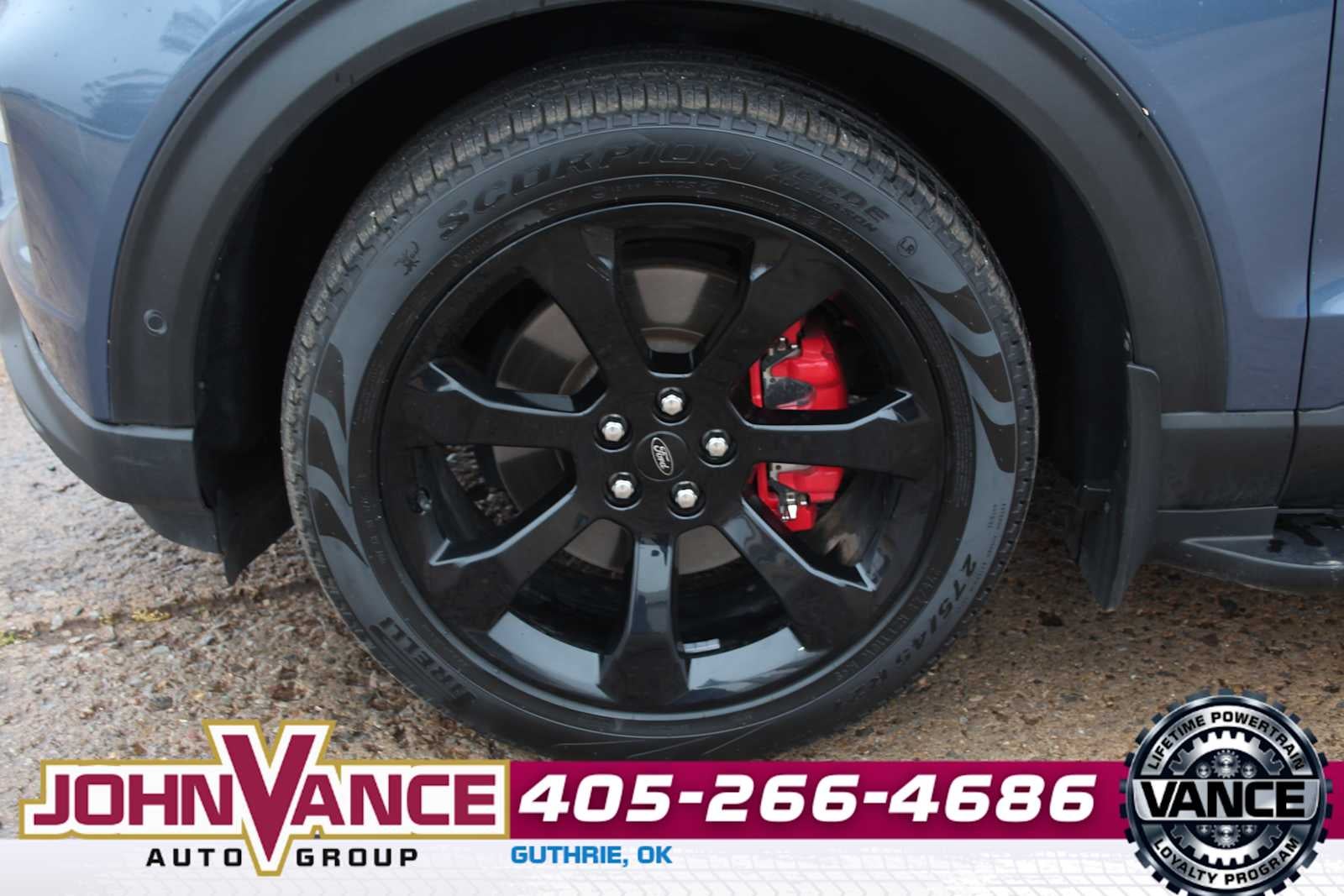 EQUIPMENT GROUP 401A ST High Package, ambient lighting, Memory Driver's Seat, Power Tilt/Telescoping Steering Column, Front Rain-Sensing Wipers, Hands-Free Foot-Activated Liftgate, Reverse Brake Assist, 360-Degree Camera w/Split View, Wireless Charging Pad, 110V/150W AC Power Outlet, Replaces the powerpoint port on the rear side of the center floor console, Active Park Assist 2.0, Radio: B&O Sound System by Bang & Olufsen, MP3 capability, 12 speakers, subwoofer, HD Radio, speed-compensated volume and SiriusXM radio w/a 3 month prepaid subscription, Service is not available in Alaska and Hawaii, Voice-Activated Touchscreen Navigation System, pinch-to-zoom capability, SiriusXM Traffic and Travel Link, Note: SiriusXM Traffic and Travel Link includes a, SiriusXM, TWIN PANEL MOONROOF remote control front windows (opens front windows from outside of the vehicle via the key fob), FRONT & SECOND ROW FLOOR LINERS (16B) standard black carpet floor mats, TRANSMISSION: 10-SPEED AUTOMATIC (STD). Ford ST with Infinite Blue Metallic Tinted Clearcoat exterior and Ebony interior features a V6 Cylinder Engine with 400 HP at 5500 RPM*.